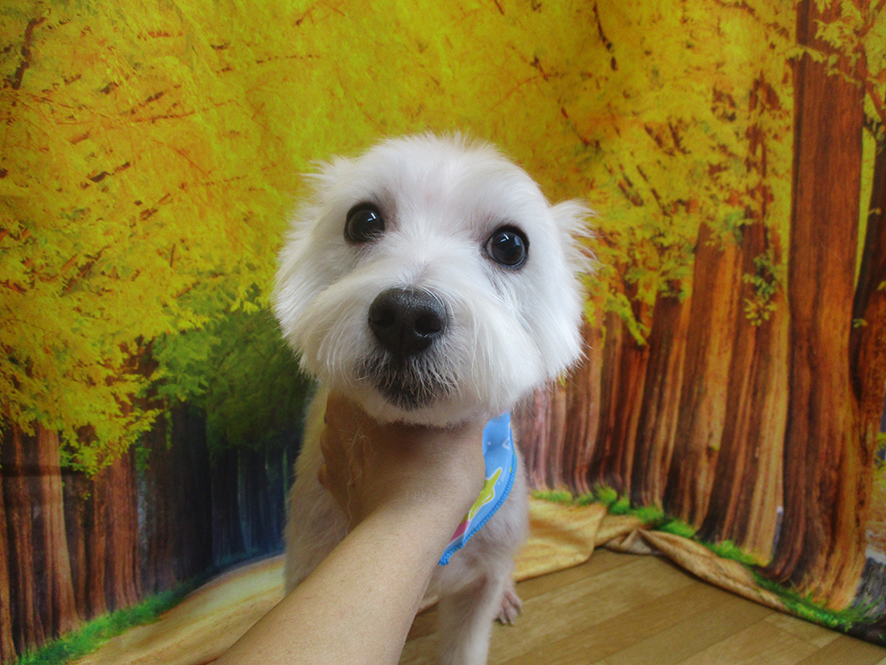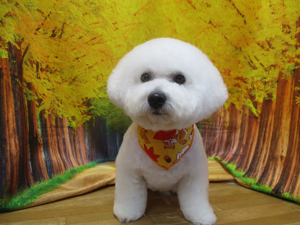 ビションフリーゼ カットコース全身ハサミで整えました。真っ白ふわふわです