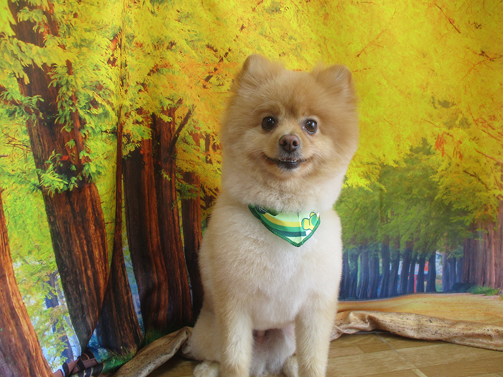 ポメラニアン カットコースお尻周りを丸くカットして仕上げました