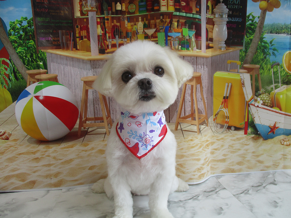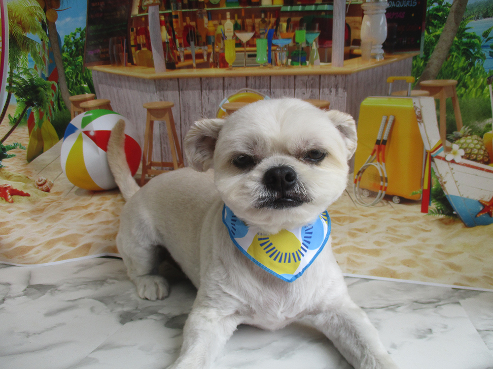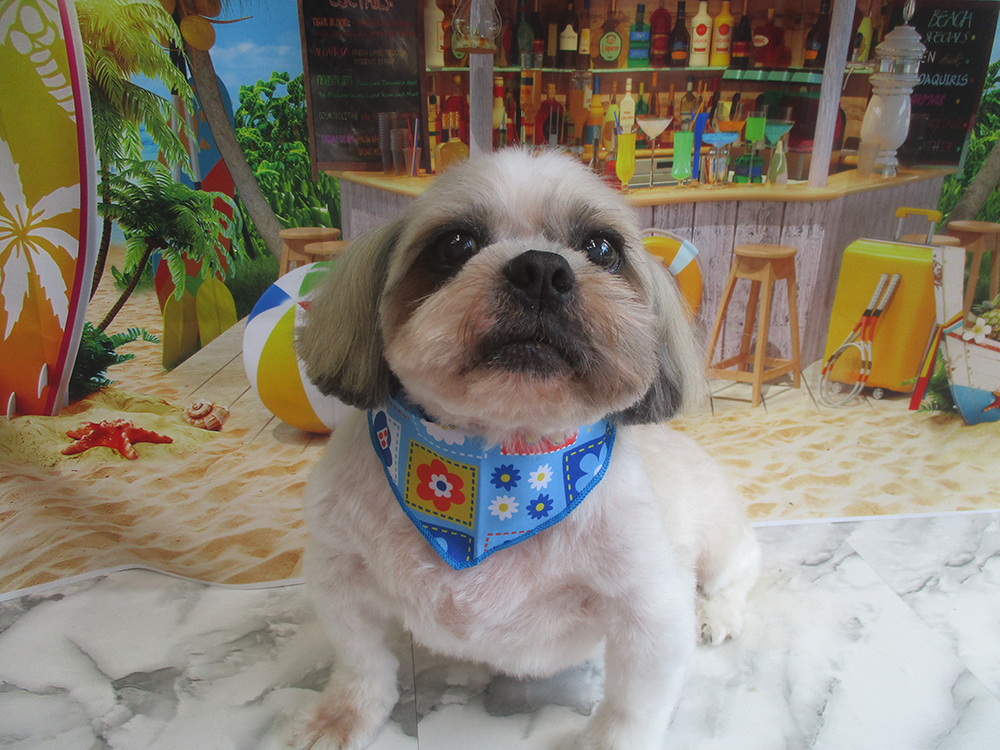 シーズー カットコース今回も5mmでスッキリカットし、頭を結んで可愛くなりました♪ |