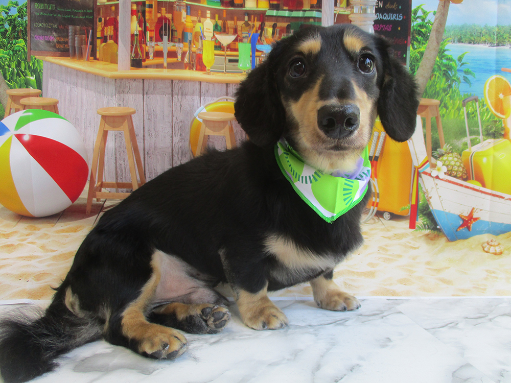 Mダックス カットコース全身ハサミで短くカットしました。シッポの毛も短くカットしました |