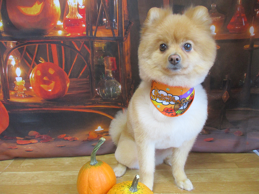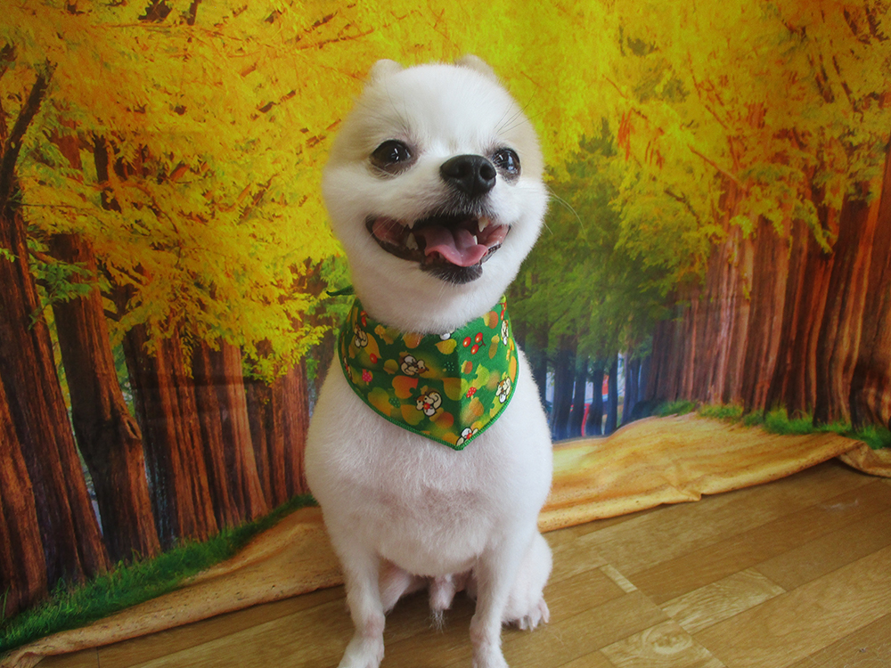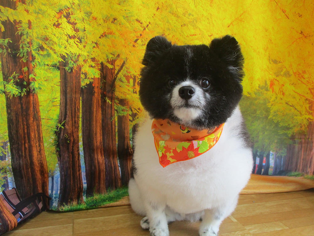 ポメラニアン カットコースハサミでスッキリカットしてまん丸です