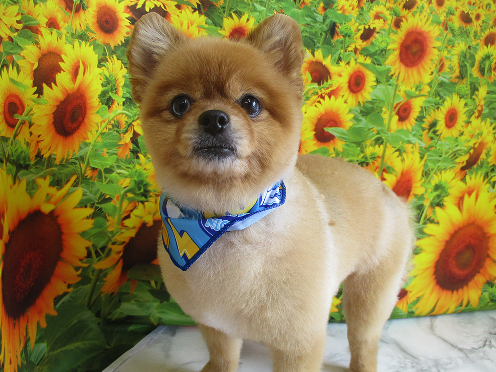 ポメラニアン カットコース初めて来てくれました。くまさんカットで丸く仕上がりました♪