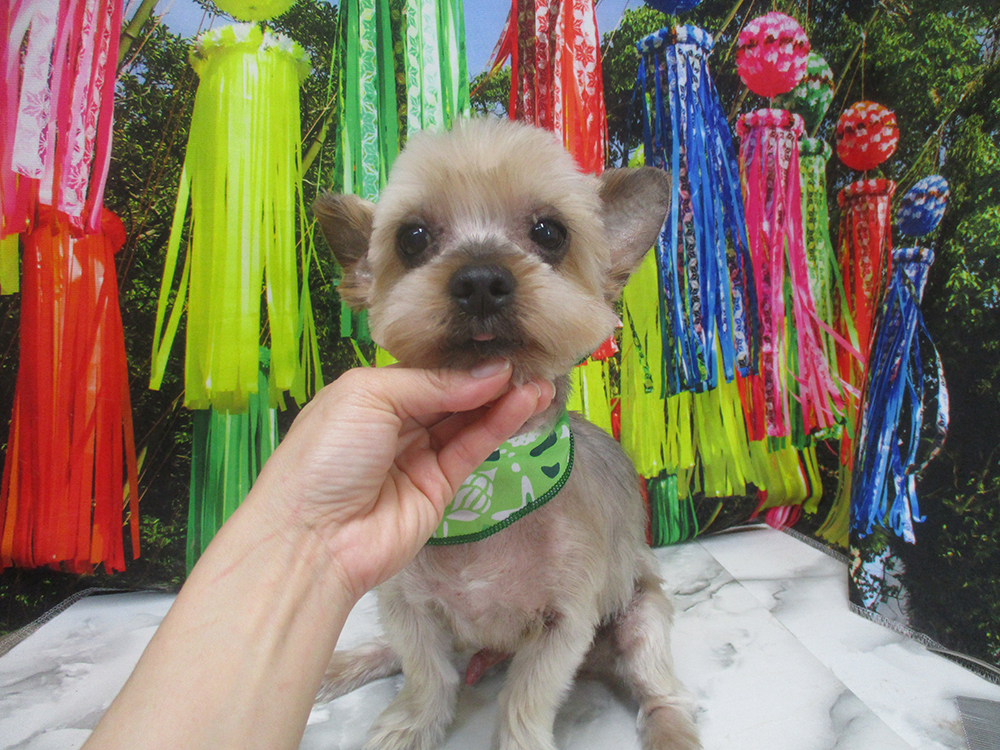 ヨーキー カットコース初めてバリカンをかけました!短くなってすっきり♪